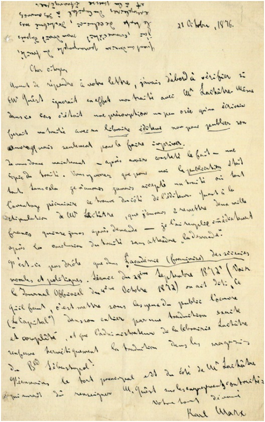 在(法兰西)伦理与政治科学院9月28日会议上,18点12分(见1872年10月4日《公报》)有人说:“应当通过准确而完整的翻译将全部著作(《资本论》)呈现给公众。”而拉沙特尔出版社的法定管理人将译著封存在塞瓦斯托波尔大街的仓库里,这难道不是咄咄怪事吗?